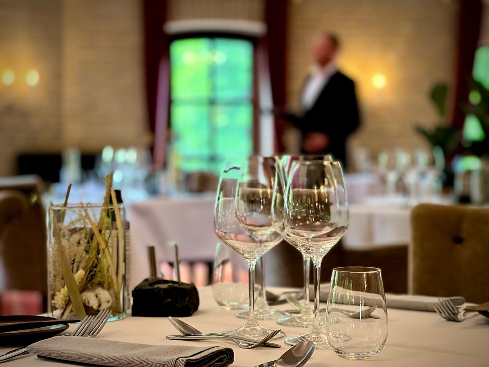 Maden er i centrum, men vinene spiller med. Vores vinkælder er nøje kurateret og matcher menuens nuancer. Alt serveres i stilfulde og varme omgivelser med udsigt til park og skov.