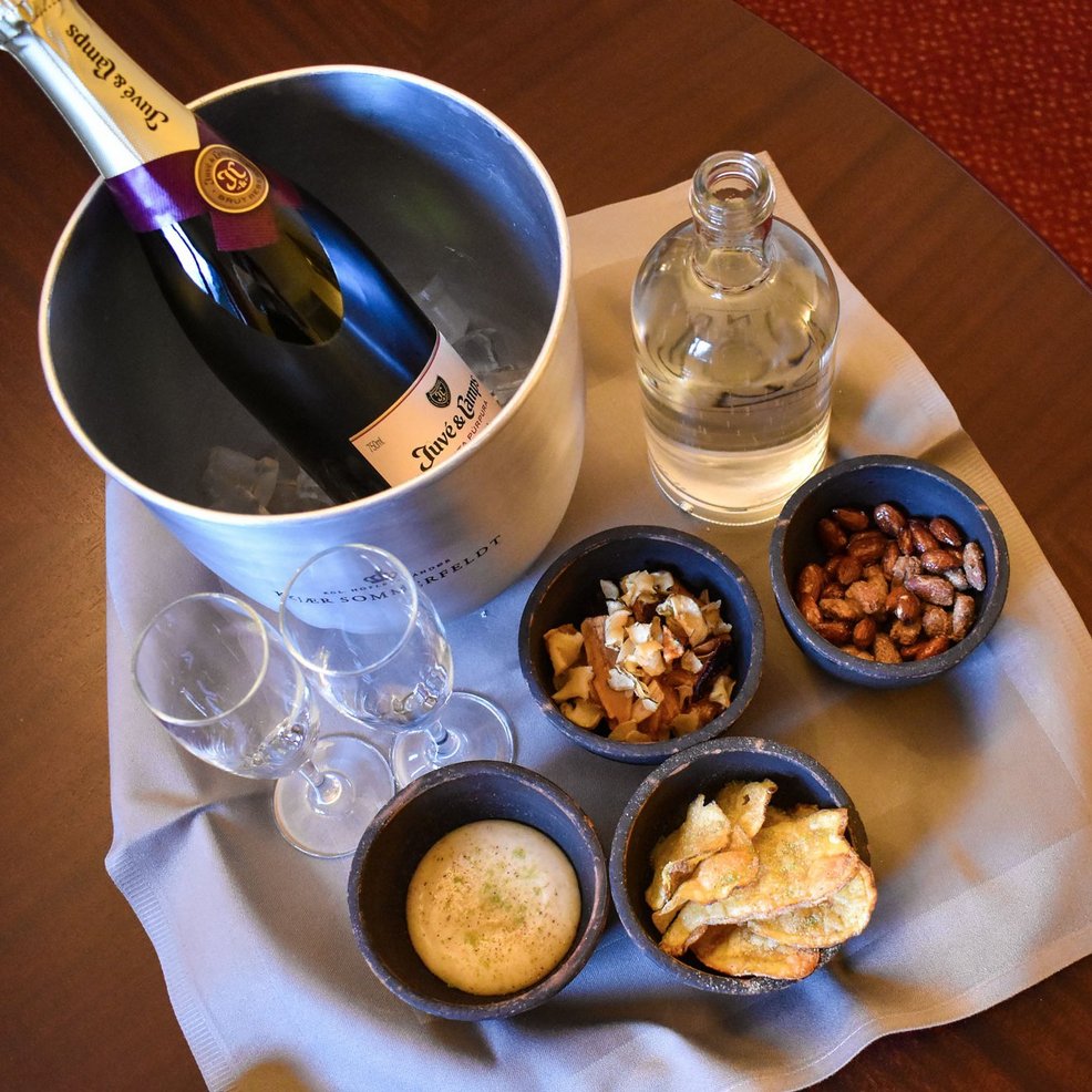 Opholdet er sammensat som en helstøbt oplevelse, hvor både mad, vin, stemning og overnatning er inkluderet.